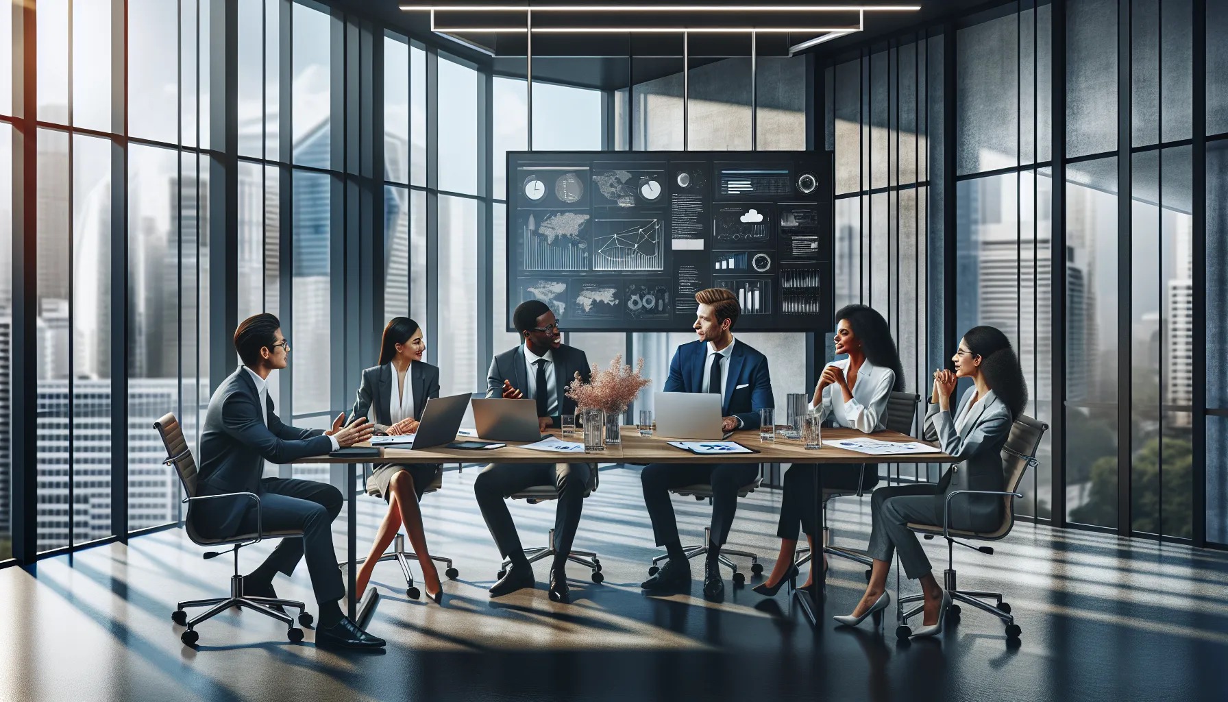 diverse team discussing challenges and prospects of fkbpfqv in a modern office.